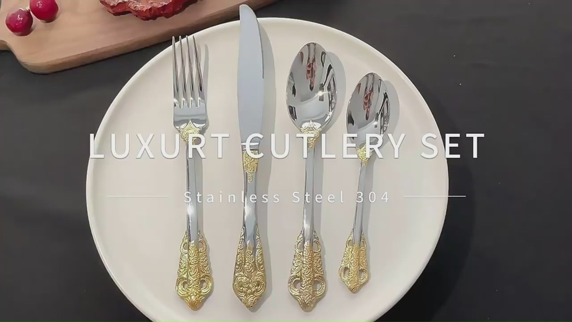 Designed to complement both everyday dining and special occasions, this flatware features a mirror-polished finish with elegant gold and silver accents that create a timeless, upscale look. The balanced weight and smooth contours provide a comfortable, ergonomic feel, delivering a luxurious dining experience with every use.