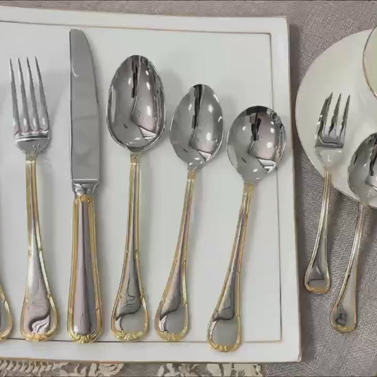 SARANDA 20-Piece Luxury Flatware Set – Silver with Gold Trim